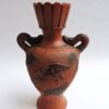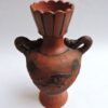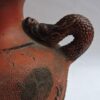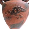 A lovely Japanese terracotta two handled vase from the Meiji period (c. 1880). The vase is painted with dragons on the handles and on the body of the vase.