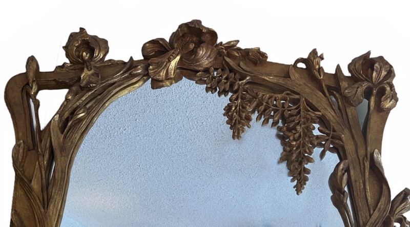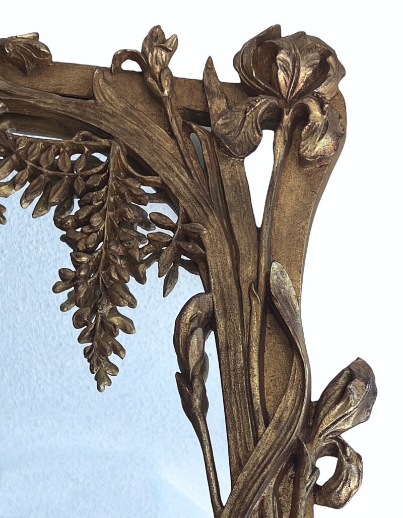 Large Art Nouveau Style Gilt Mirror with Iris Flower Detail, Circa Mid 20th Century
