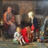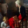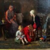 Large British Oil on Canvas by Arthur Winter Shaw 1869-1948, Untitled Interior Scene of “Mother & Child Sewing”