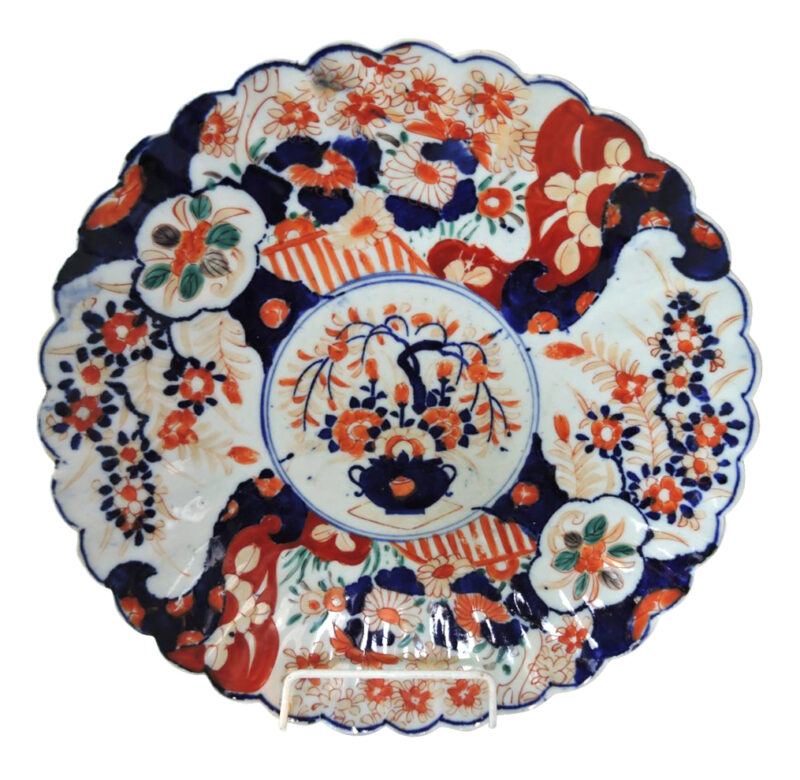 Here is a gorgeous, 19th century, hand-painted, large Imari Japan porcelain charger plate with scalloped edges.
