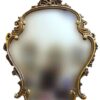 A ‘Large Italian gilt wood mirror’ – dates mid-20th century. It features an unusual large-shaped mirror in a gilt wood and gesso frame decorated with floral, scroll and leaflike motifs in a rusted gilt finish. Beautiful condition.