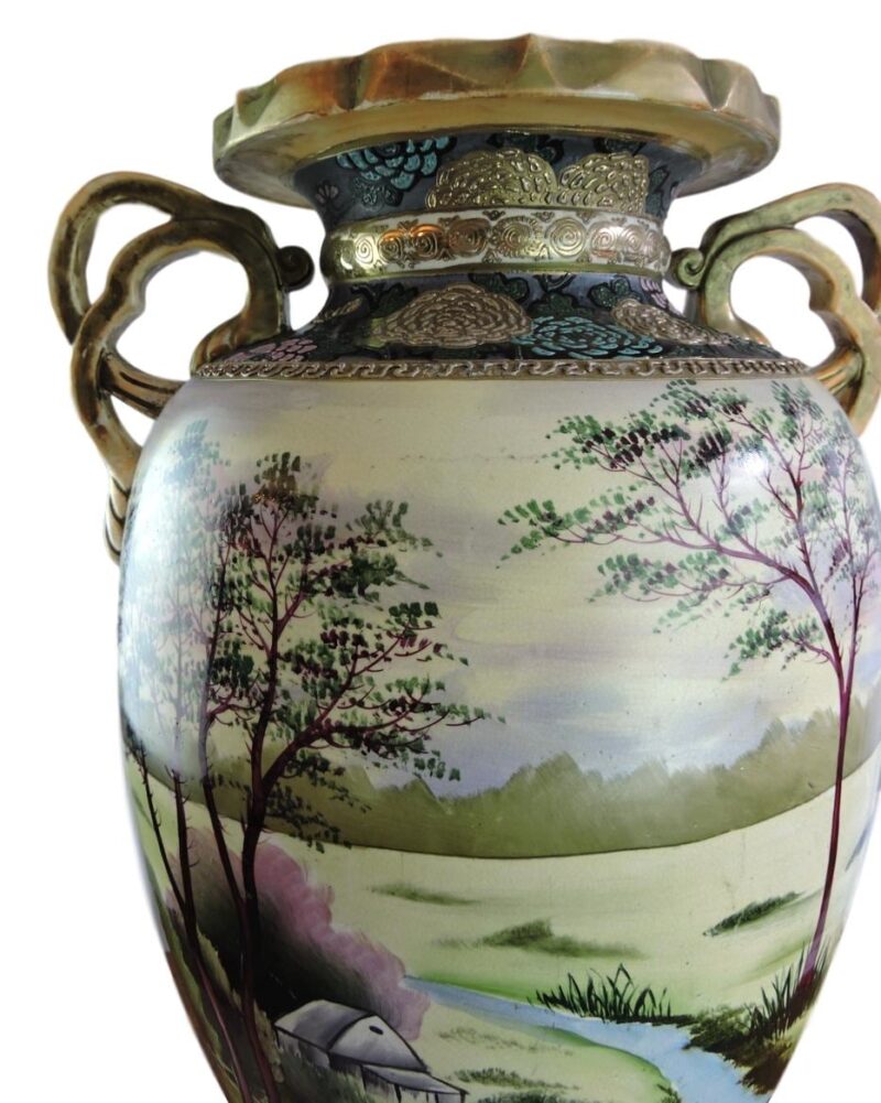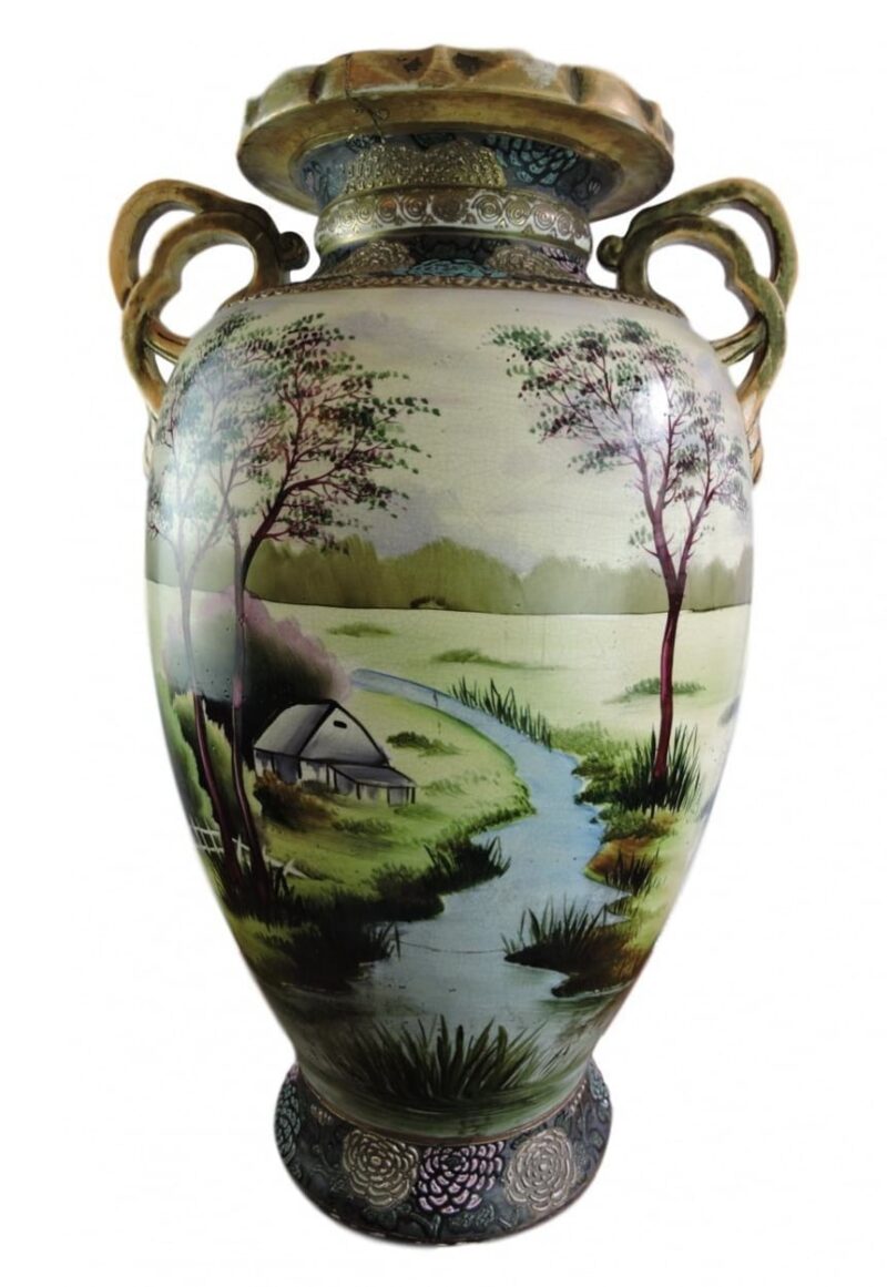Home»Oriental / Asian»Large Japanese Moriage Vase With Hand-Painted ‘River & Garden’ Scenes – C.1900