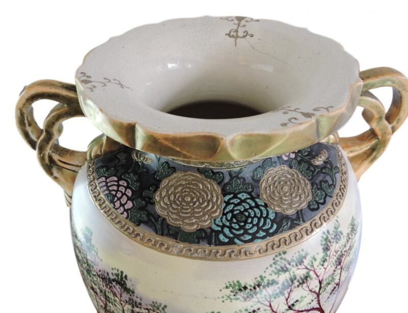 Large Japanese Moriage Vase With Hand-Painted Scenes – C.1900