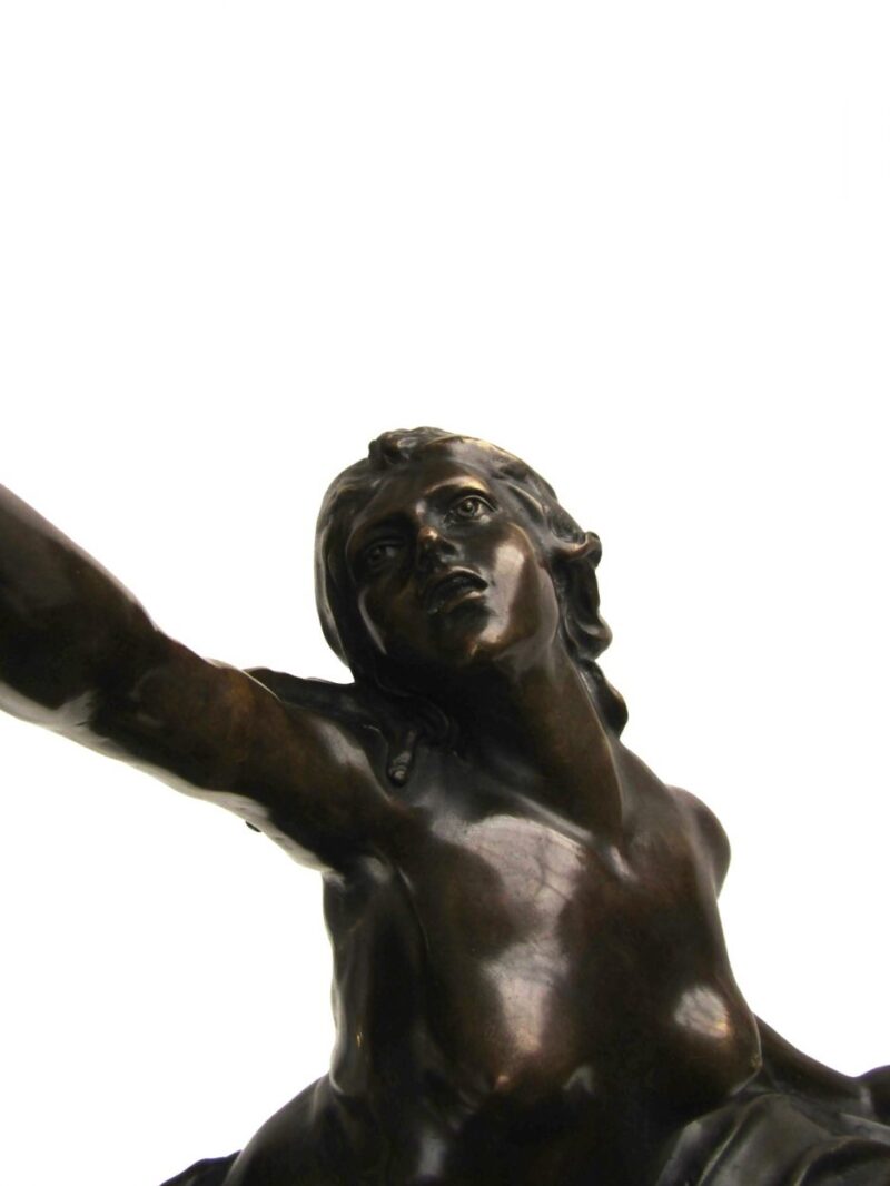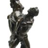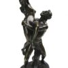 A nice quality large patina’d bronze figural grouping showing a nude man and woman with the man holding the woman aloft – the woman reaches her right arm up into the air.  The bronze grouping is mounted on a heavy black marble base.