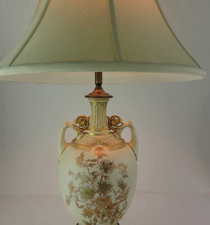 Large Royal Worcester Porcelain Lamp, circa 1890.