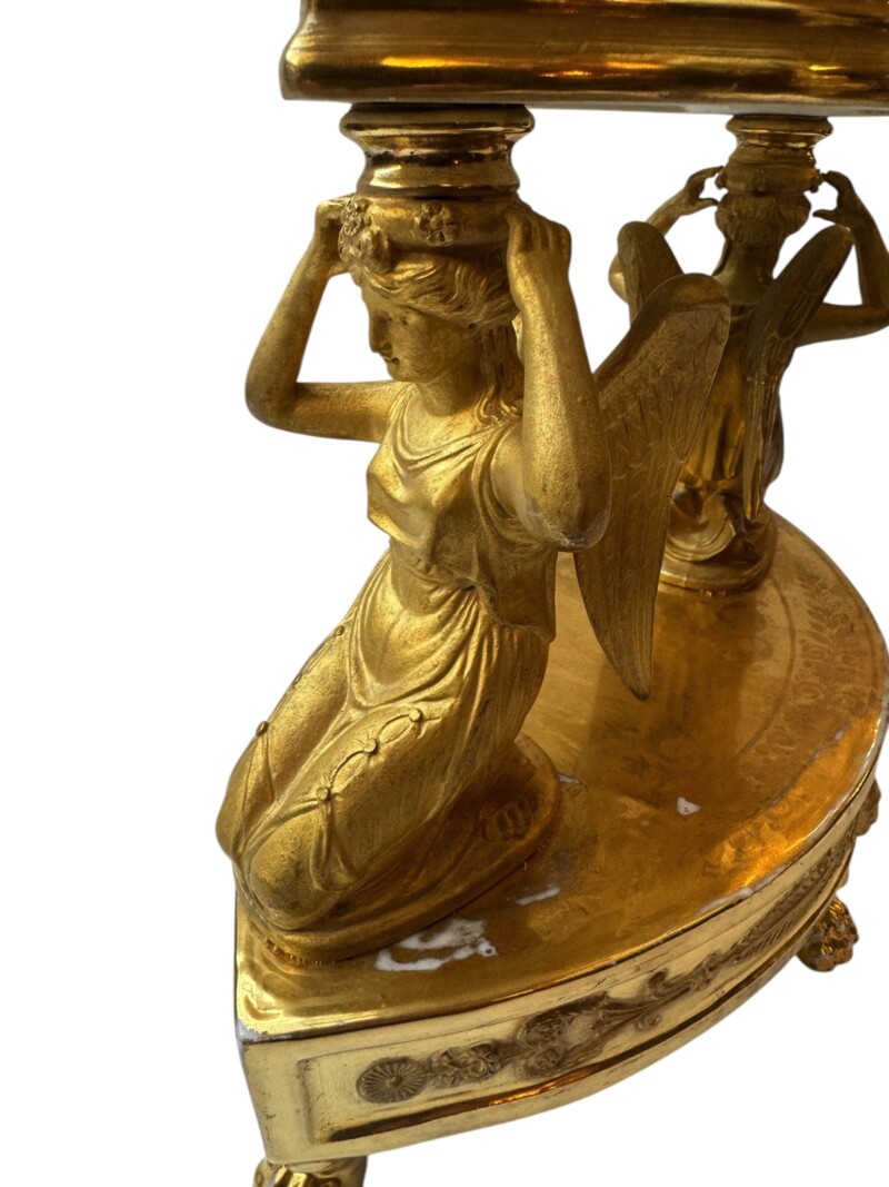 Large Stately Paris Porcelain Gilt Basket Centrepiece Resting on 2 Neoclassical Angel Columns, Early 19th Century