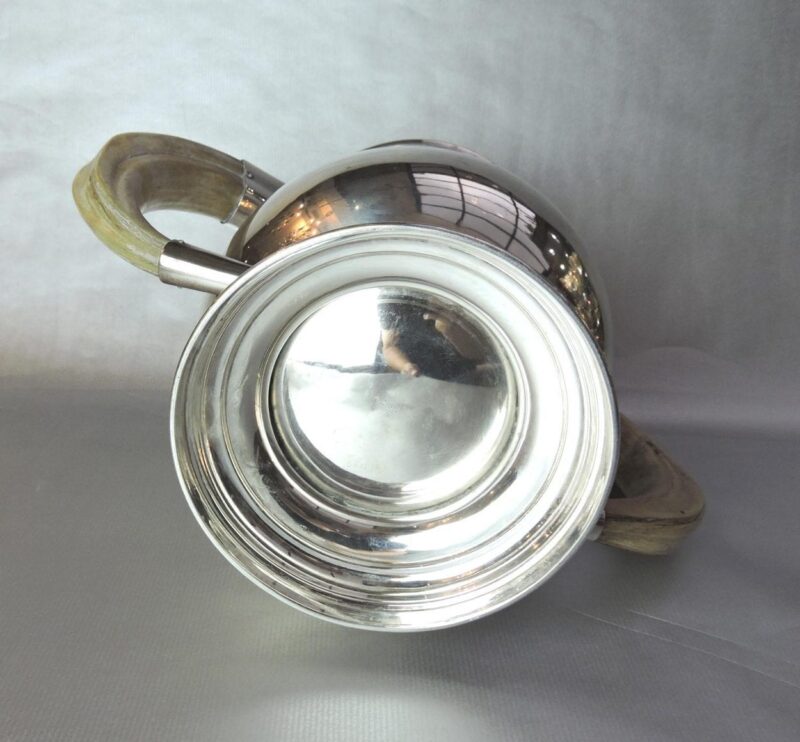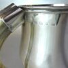 The bulbous body and round pedestal foot are sterling with English hallmarks for Birmingham, 1898.  Makers mark:  John Thomas Heath & John Hartsome Middleton – silver makers from the firm Huskin & Heath.