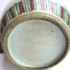 Here is a wonderful Asian porcelain ginger type jar with a matching lid and sitting on a pierced wooden, footed stand. The jar is very colourful with designs of mountains and warriors on horseback with a banded design near the base of the jar. There are no distinguishing maker’s marks on the underside of the jar.
