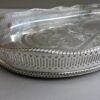 An English silver-plate on copper gallery tray with pierced sides and embossed decoration. The underside of the tray is stamped “GNUN. Sheffield Reproduction. Silver-plated on Copper. Made in England. 7635”.