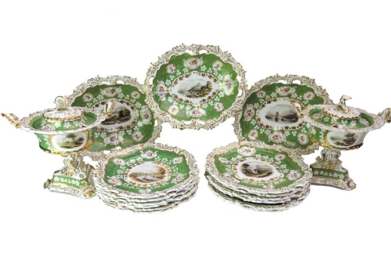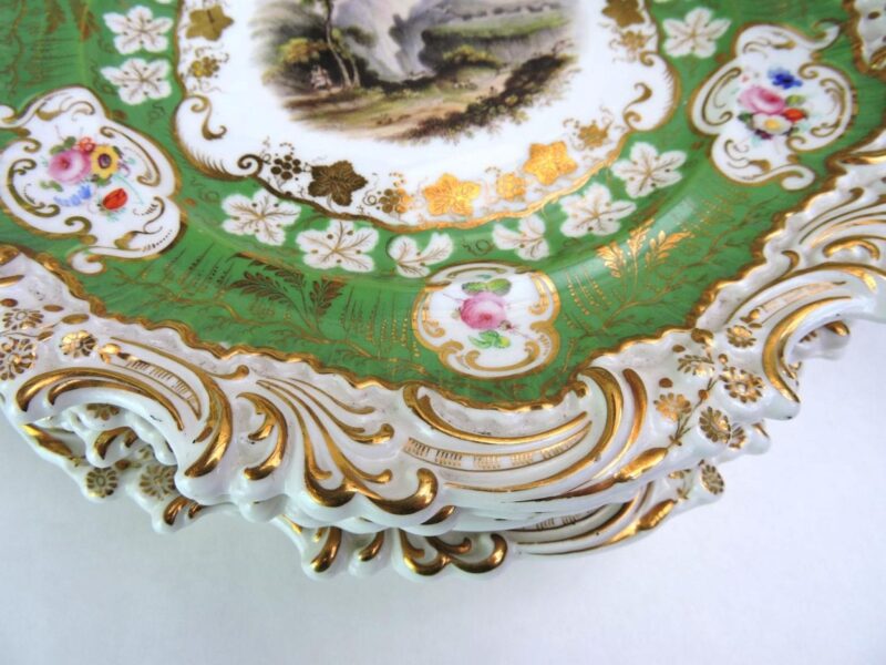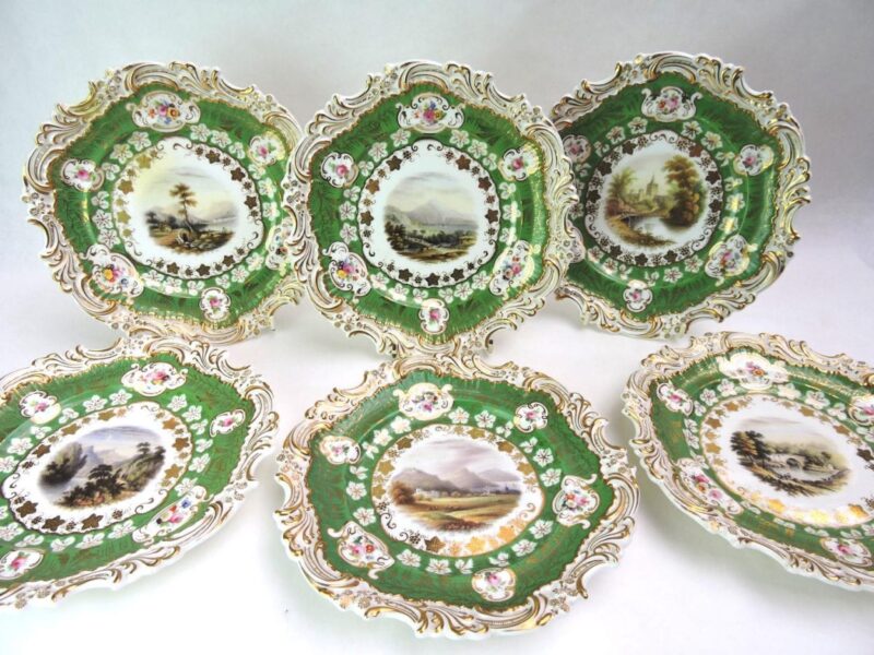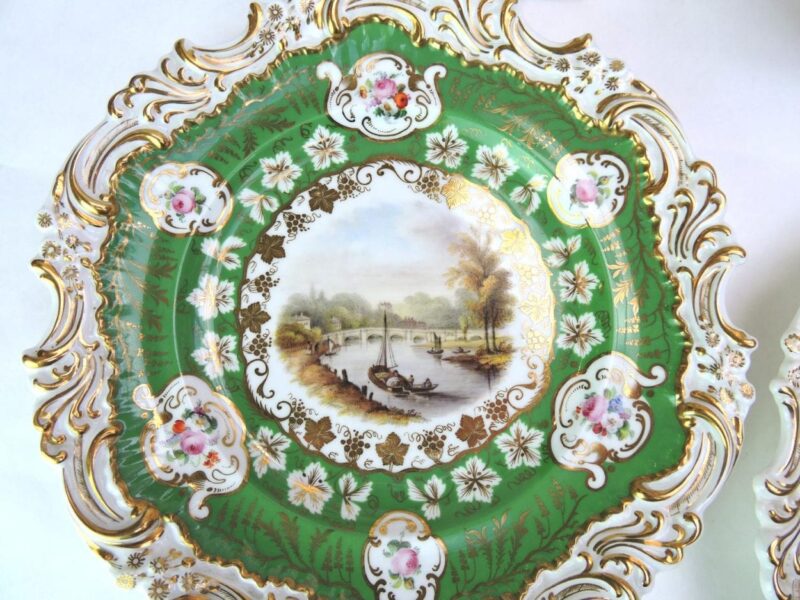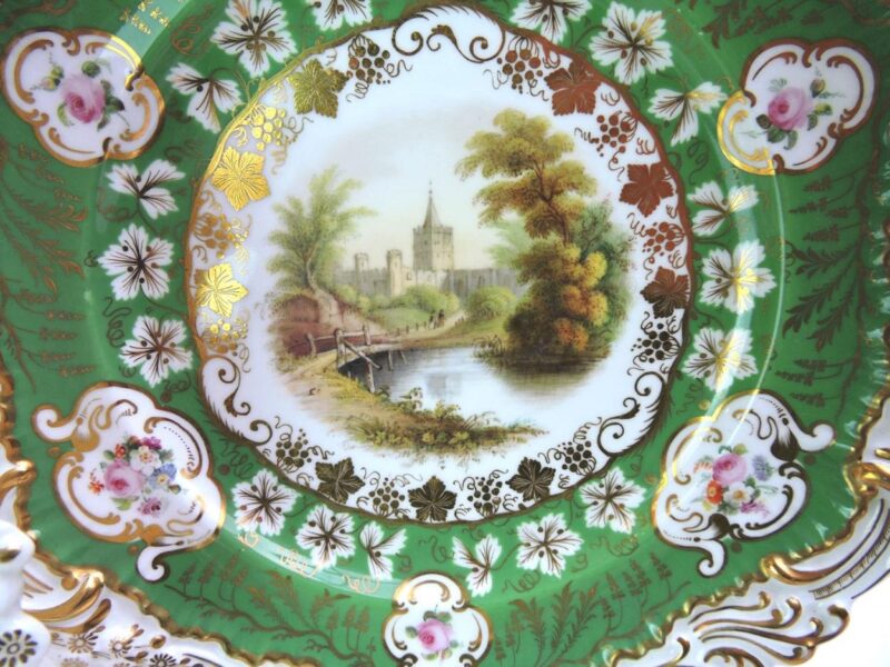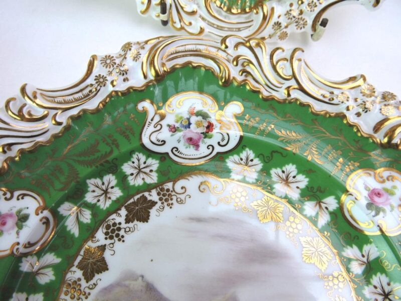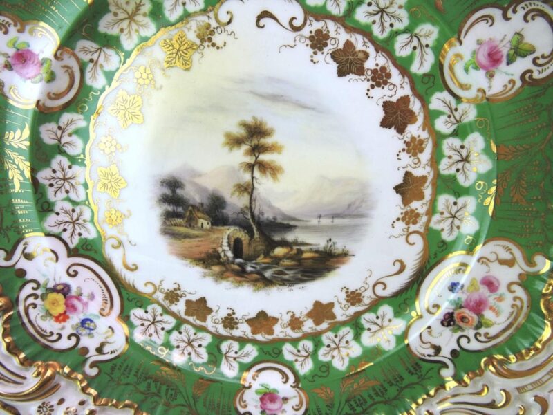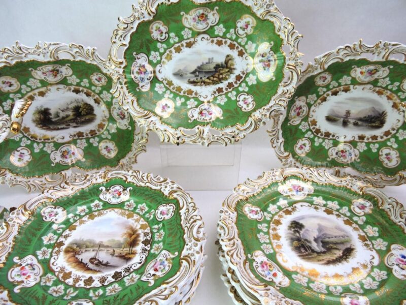 Lovely 19th Century Hand Painted Dessert Service for 12 – Davenport, c. 1880 – English & Scottish Scenes.