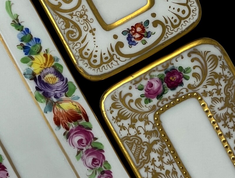 Lovely Dresden Saxony Porcelain Name Place Card Holders – Set of 6 Hand Painted Florals in Original Box 1934-1945
