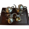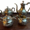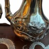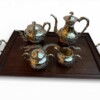 Magnificent & Luxurious “Chinese Export Sterling Silver (.90)” Four-piece Tea Service & Rosewood with Sterling Silver Dragons Tray by the Prestigious Firm “Wang Hing & Company”, Weight 2 kilos , Circa 1890-1910