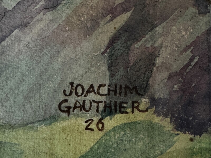 Signed to the right lower front and dated 1926, this work is in excellent condition and reflects Gauthier’s close connection to the Canadian landscape and his association with artists of the Group of Seven circle. Gauthier was a member of the Royal Canadian Academy and the Ontario Society of Artists, and his work is held in numerous public and private collections. His watercolours are particularly admired for their confident brushwork, natural colour harmony, and sensitive rendering of Canada’s rugged terrain.