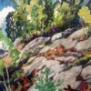 ArtJoachim George Gauthier (often shown simply as Joachim Gauthier), is a renowned Canadian artist best known for his landscape paintings and watercolours. He lived from 1897 to 1988 and spent much of his life in Ontario, Canada. Gauthier was born in North Bay, Ontario and became interested in art at a very young age. Early in his career he apprenticed as a sign-writer and took life-drawing classes while in Washington State. He studied under notable Canadian artists like J.E.H. MacDonald and Franklin Carmichael, both famous “Group of Seven” landscape painters. Gauthier worked for many years as a commercial artist with Sampson-Matthews Ltd. in Toronto, where he became friends and showed with “Group of Seven” members.