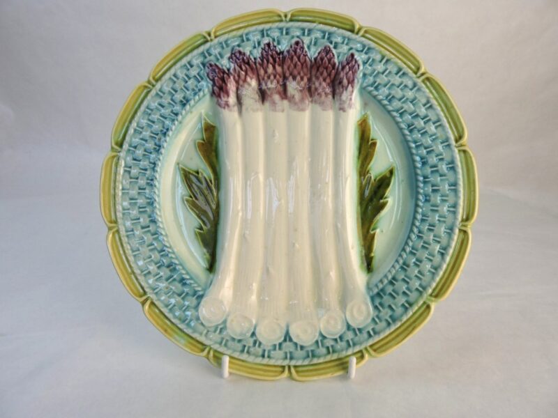 Majolica Asparagus Plate, Scalloped Edges, 19th Century