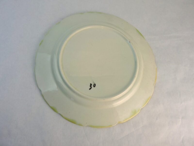 The plate measures 9 3/4 inches in diameter; is numbered “30” on the reverse; and is in good condition.