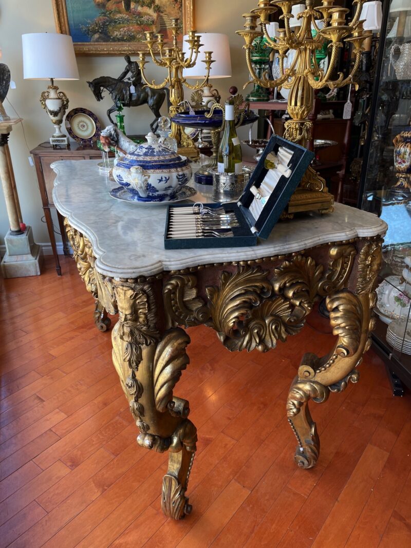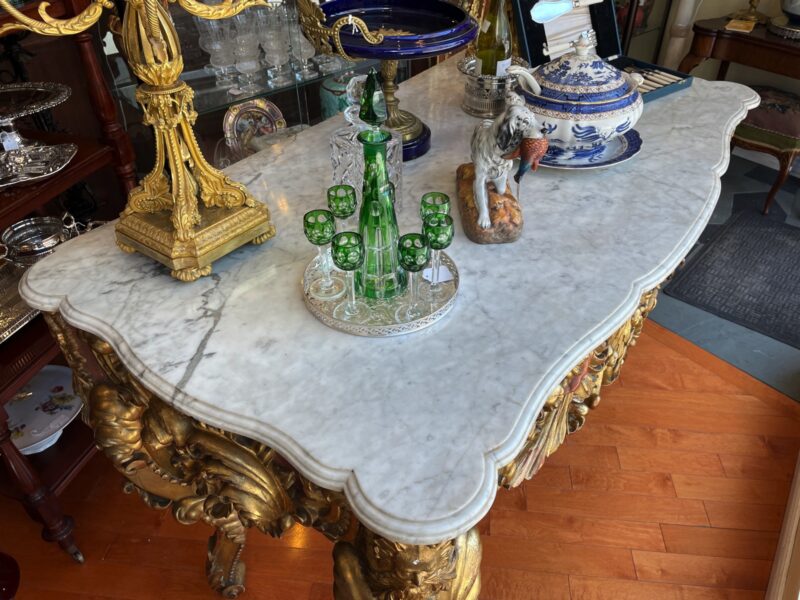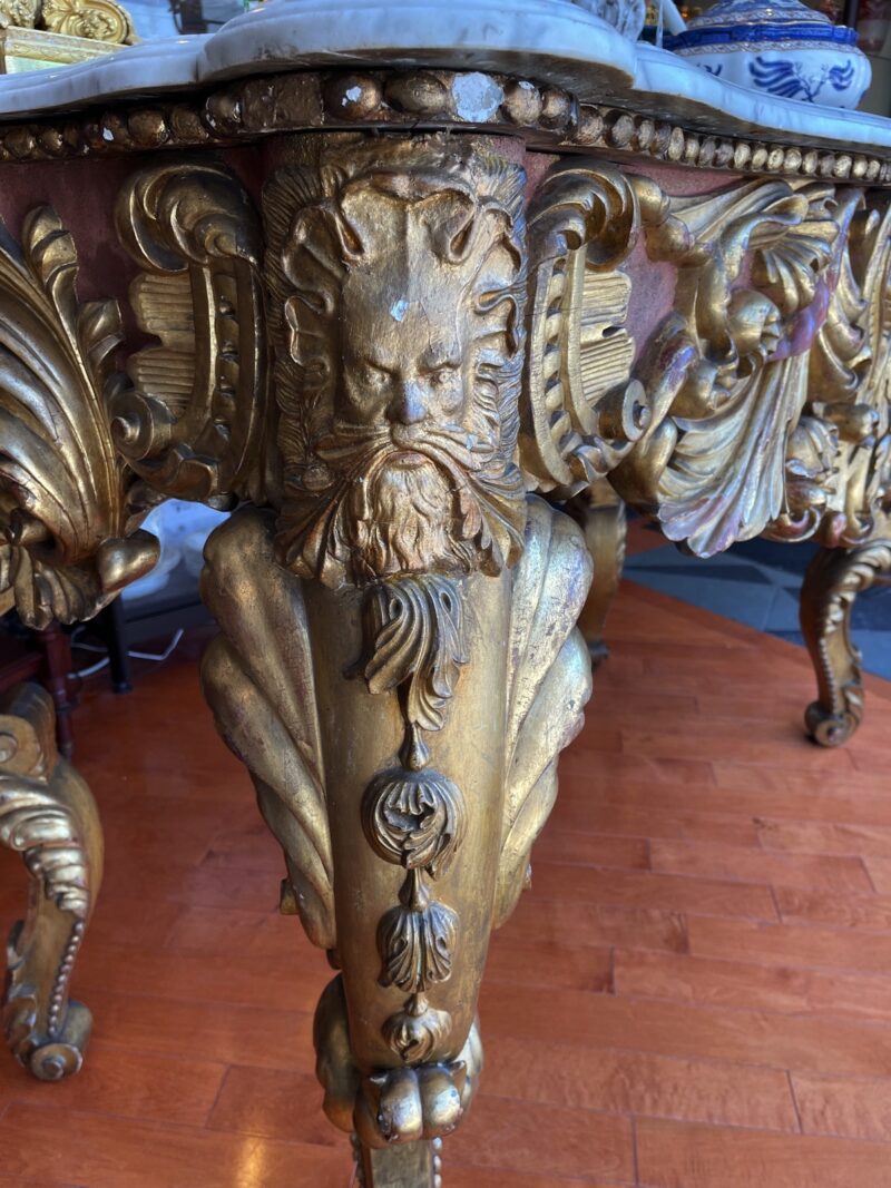 Massive Early 19th Century French Giltwood & Marble Top Credenza – Stamped Marker’s Mark S.A.