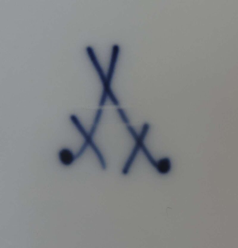 Marked: On the bottom in blue, crossed swords for Meissen. 3 tea cup and saucer sets is marked with ‘Meissen’, indicating a second Meissen factory mark using the same pattern.