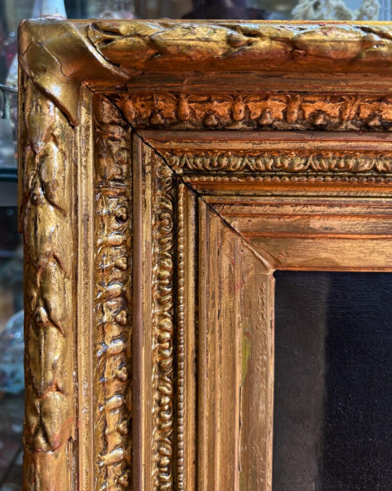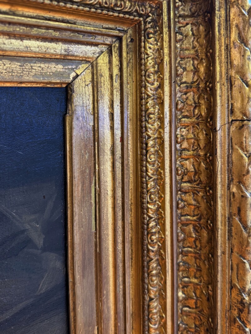 The quality of the painting capturing light and shadows is of high quality.  The frame is wonderful and substantial adding to the work’s “reference and history”.