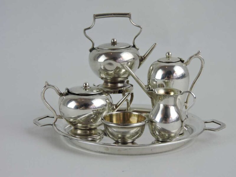 Miniature English Sterling Hallmarked – 6 Piece Tea Set. Dated 1949-1950.