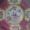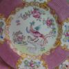 Lovely bright pink patterned dessert / salad sized plates in the “Pink Cockatrice” pattern by Mintons.