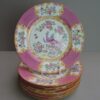 Mintons, England “Pink Cockatrice” – Set of 8 Dessert / Salad Plates – 7 3/4 inches – circa 1910