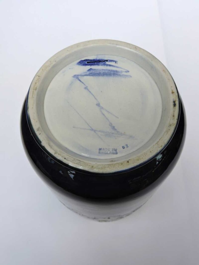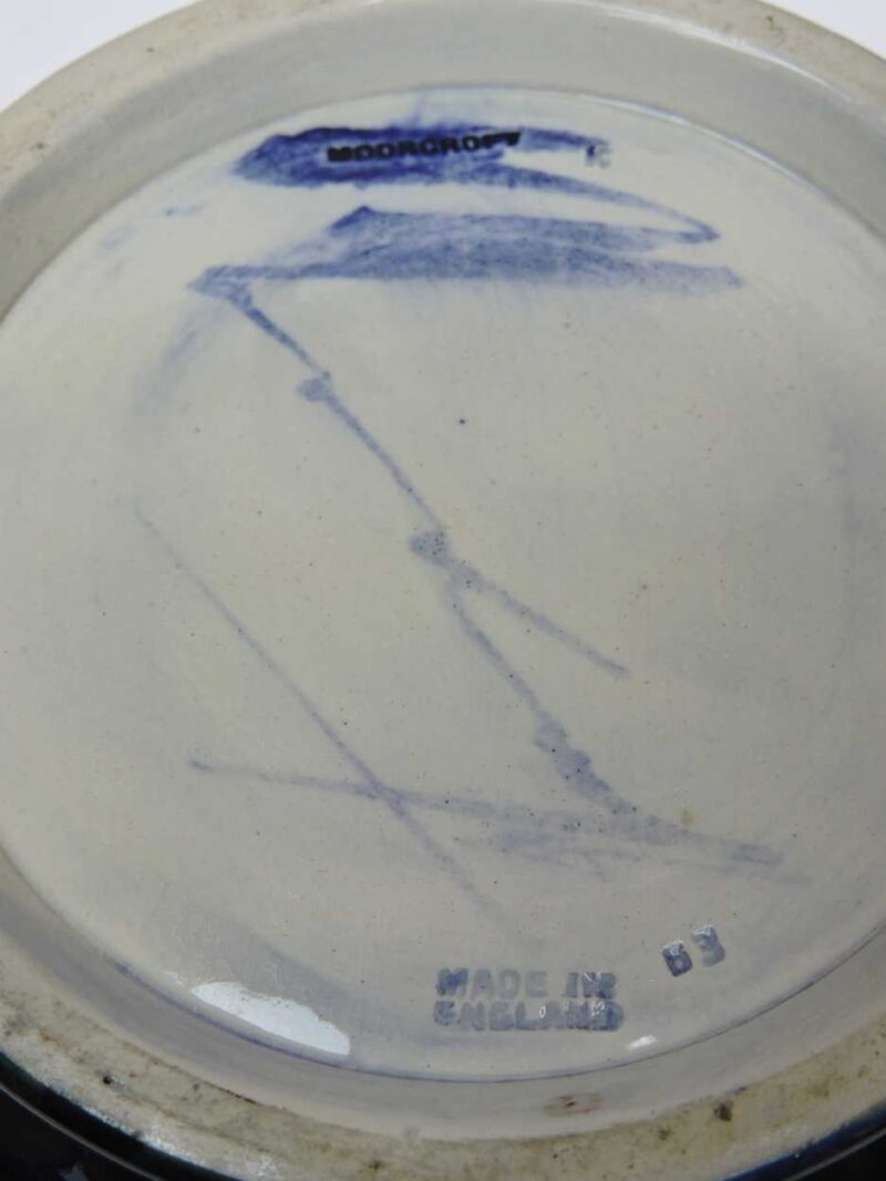 Marked: On the bottom in blue, impressed mark and signed monogram, Moorcoft. Made in England.