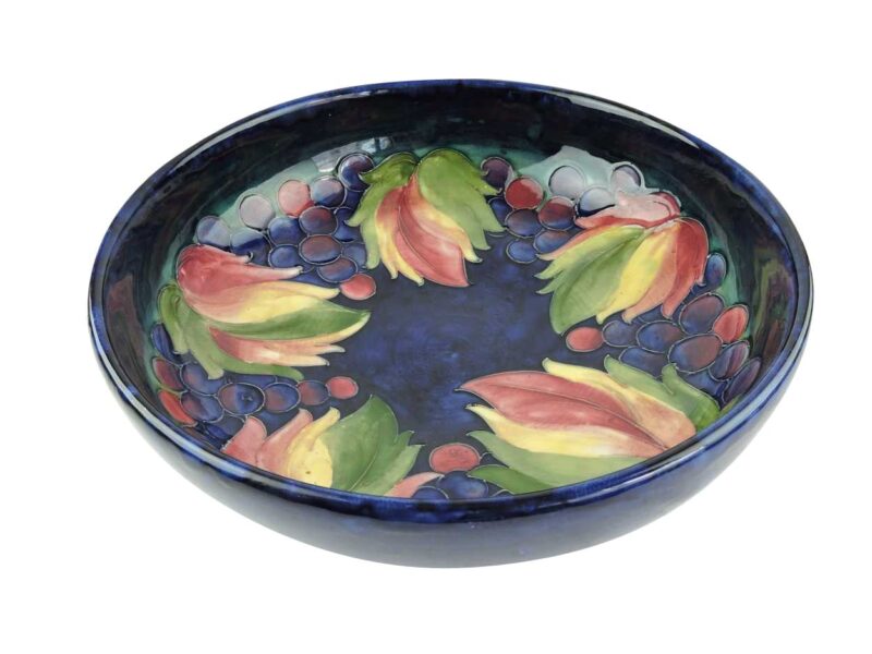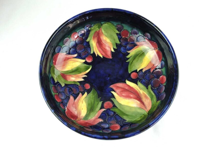 Moorcroft Pottery- Large 14 inch Wide Bowl In Berry & Leaf Pattern – circa 1930’s