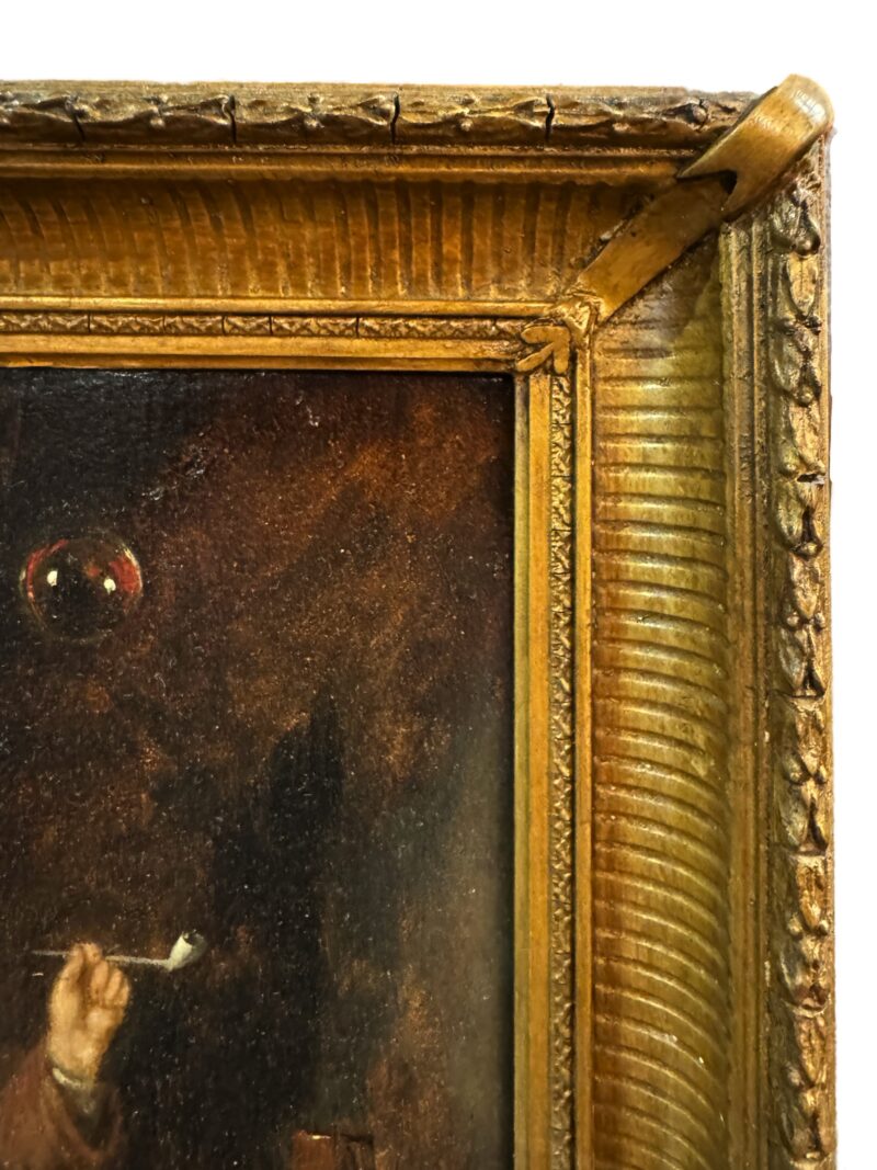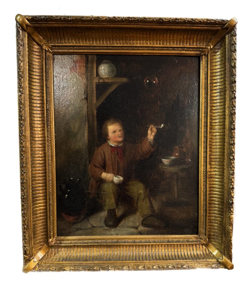 Oil Painting on Wood Panel – “Boy Blowing Bubbles” by Arthur Green (1894-1988) – Birmingham circa 1920
