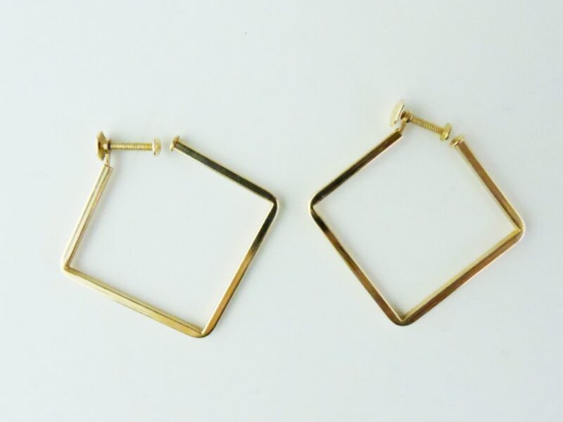 A lovely pair of 14 karat gold earrings from Birks Group, Canada. A simple design of a classic square, yet bold in size with adjustable clip-ons for the wearer. These earrings are a delightful vintage classic, in a flexible tone of gold that can brighten up any attire.