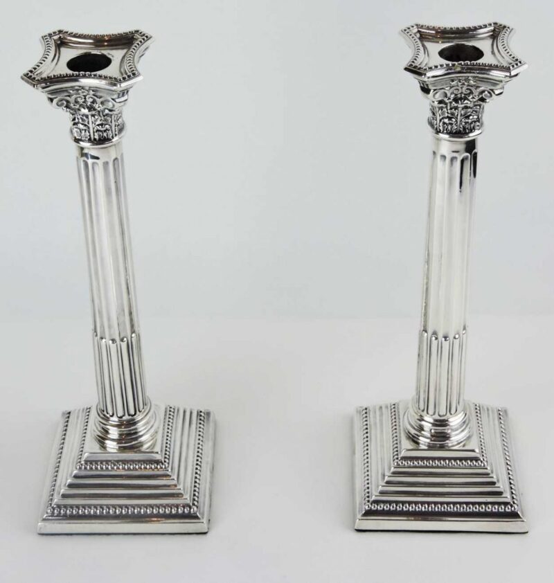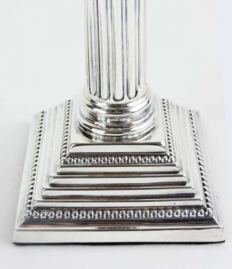 A Pair of English Hallmarked Sterling Column Candle Holders. Birmingham, Dated 1936.