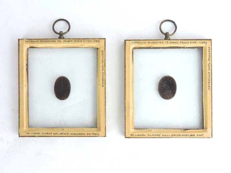 Pair of Framed Intaglio Pendants Accredited To James Tassie (1735 -1799) – Scottish Gem Engraver.