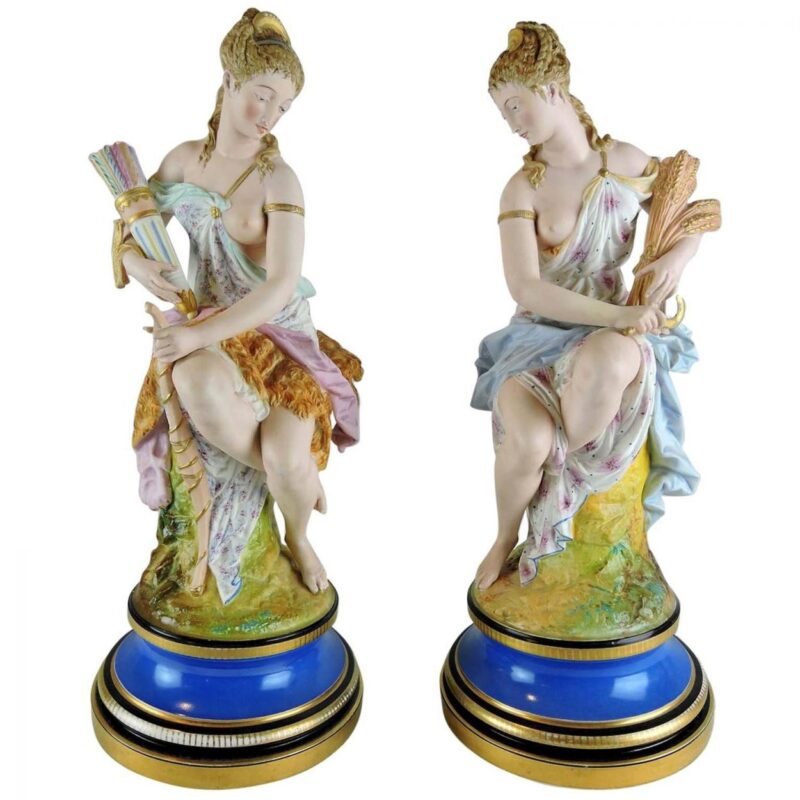 Pair of French Bisque and Porcelain Neoclassical Statues, Artemis and Demeter