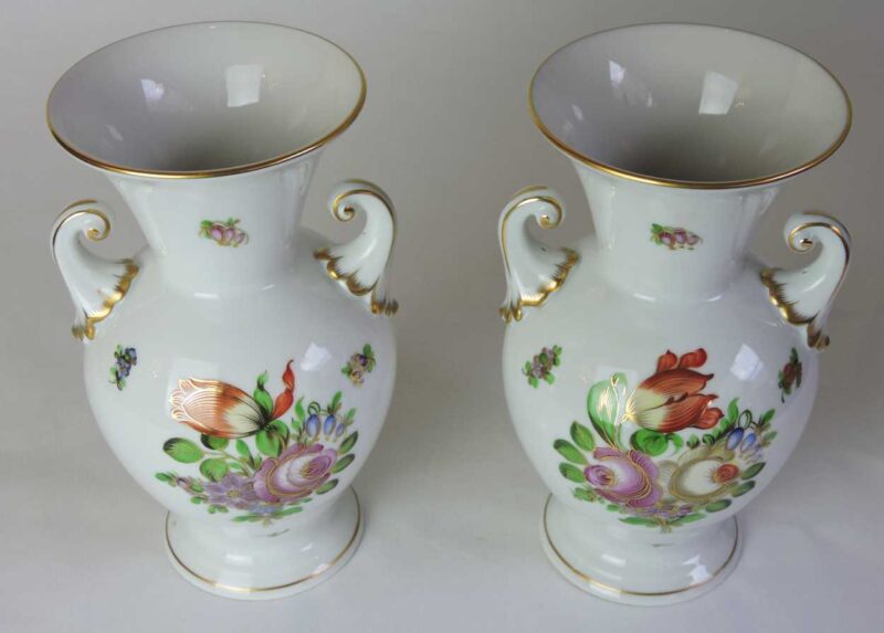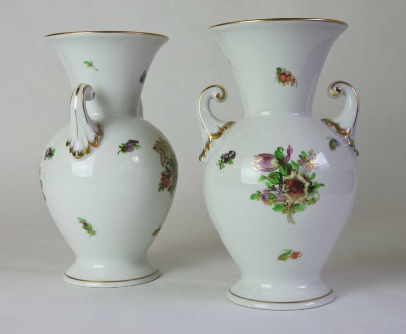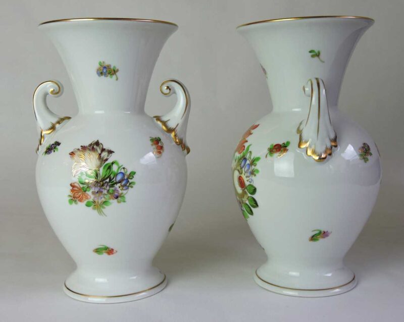 Pair of Herend Porcelain Vases With Hand-Painted Flower Pattern