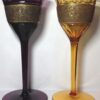 Pair of Moser Karlsbad Wine Glasses Acid Etched & Gold Banded dating 1918-1922 – One Amber, One Amethyst