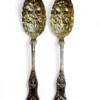 A lovely pair of sterling berry spoons in the Kings Pattern with gilt silver bowls in repoussé of berrys and leaves.   Marked for J.E. Caldwell & Co – an American silversmith and jeweller located in Philadelphia circa 1850.