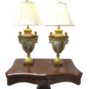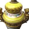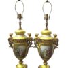 The yellow porcelain is quite rare.  The lamps were originally large French Urns that have been electrified at some point in the early 20th century which was a common occurrence to repurpose items when electricity became more widely used.