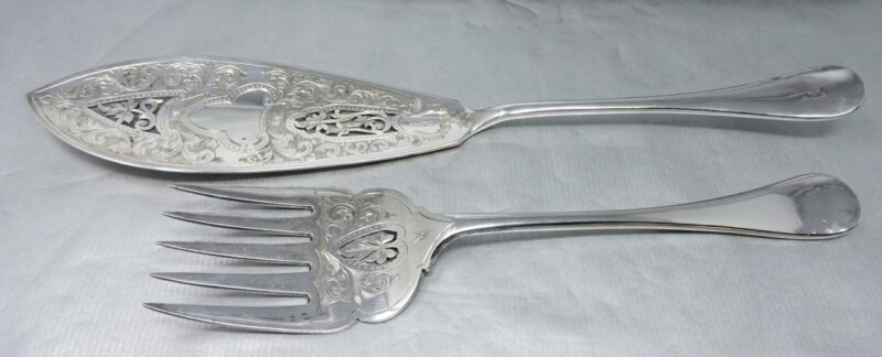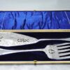 Pair of Beautifully Engraved & Pierced English Sheffield Silver-Plated Fish Servers in the Original Box – Old English Pattern – John Sanderson & Son c.1890