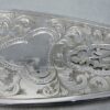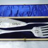 v** SOLD ARCHIVES **vA beautiful pair of floral and swirl decorated and pierced silver-plated fish servers in their original box. The box is black leather with gold trim. The interior of the box is blue velvet and blue silk.