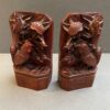 Pair of Carved Rosewood Bookends with Carved Chicken and Floral Decorations