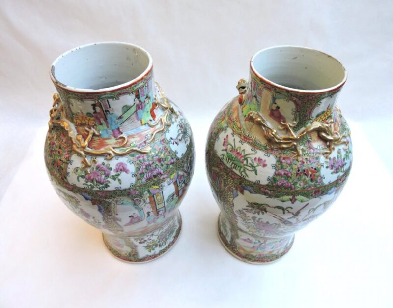 Pair of Chinese Famille Rose Vases – late 19th Century