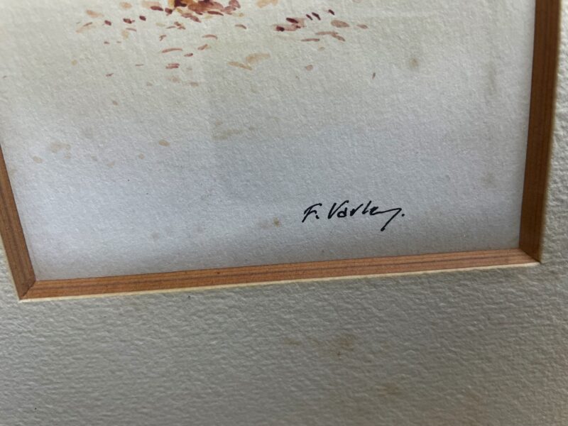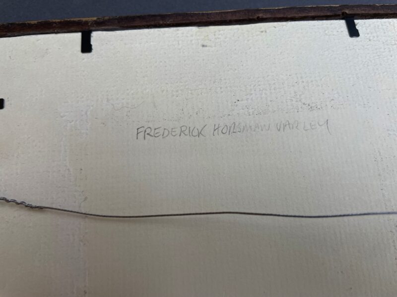 The paintings are signed “F. Varley” in black ink in the lower right hand corner of the painting. Varley was born in Sheffield, England in 1881 and didn’t emigrate to Canada until 1912. He studied art in Sheffield and attended the Academie Royale des Beaux-Arts in Antwerp, Belgium in 1900-1902.