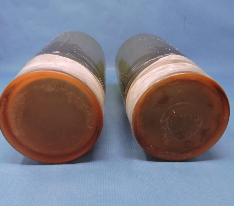 There are 3 tiny fleabites on the rims that could be buffed out.   Overall, the vases are in excellent condition.