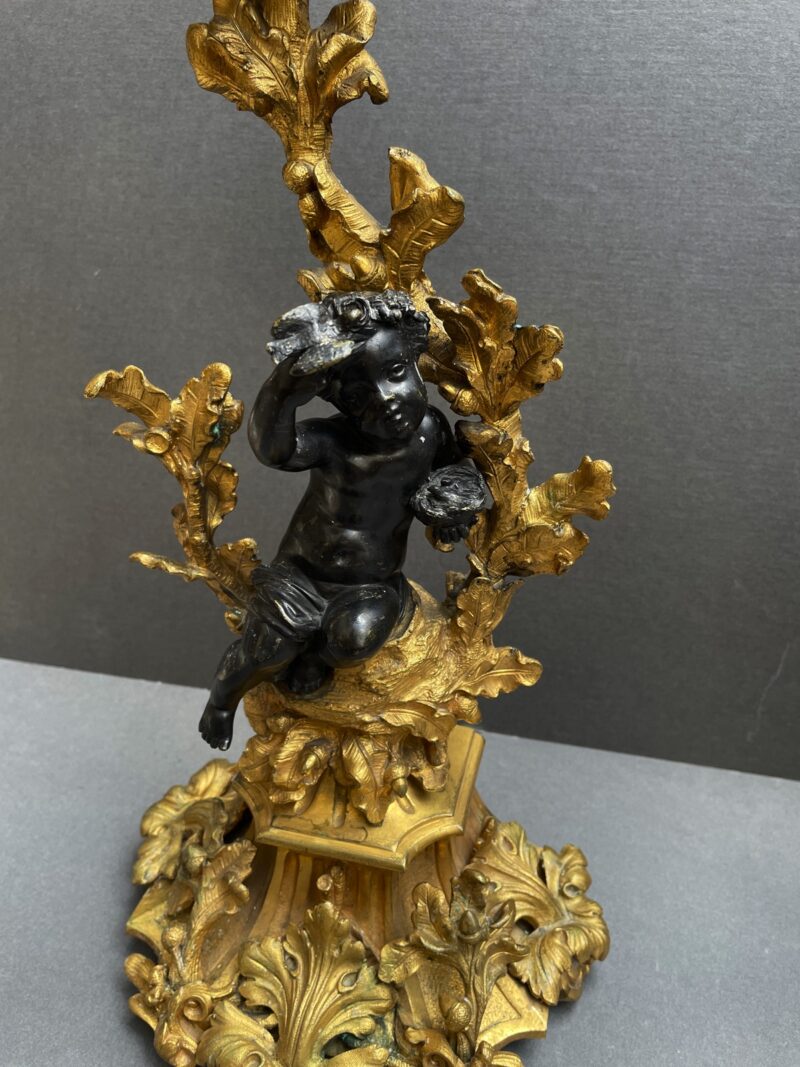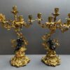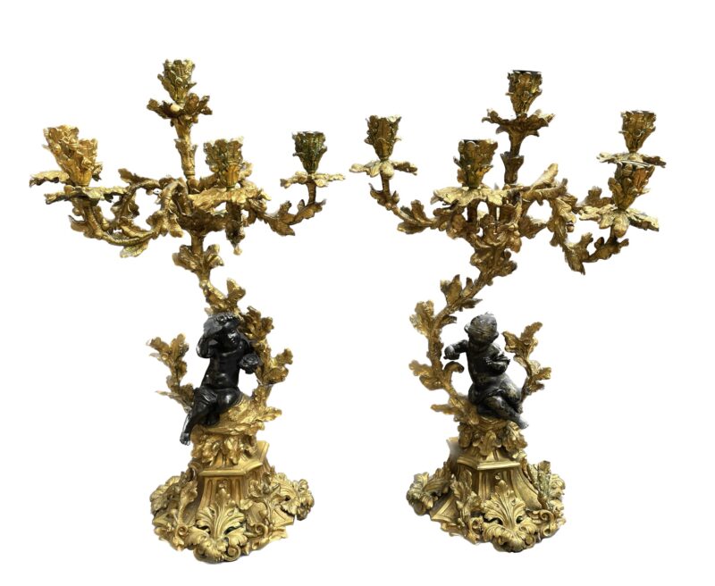 Pair of French Rococo Gilt Bronze Candelabras with Putti Figures – circa 1860 – 21 Inches Tall
