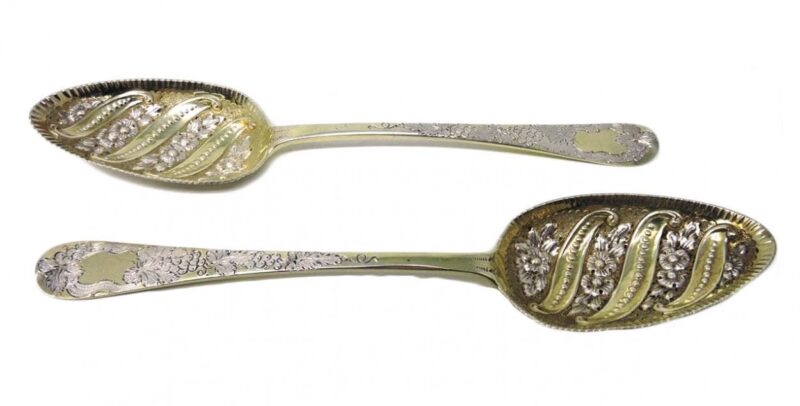 Pair of Geo III English Hallmarked 1812 – Sterling Silver Berry Spoons – Solomon Houghman, London maker.