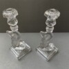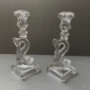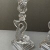 A lovely pair of pressed glass patterned candle holders with dolphin decorations and square bases. They are signed “MMA” on the underside of each holder.  Made by the Imperial Glass Co for Metropolitan Museum of Art in the 1970’s.