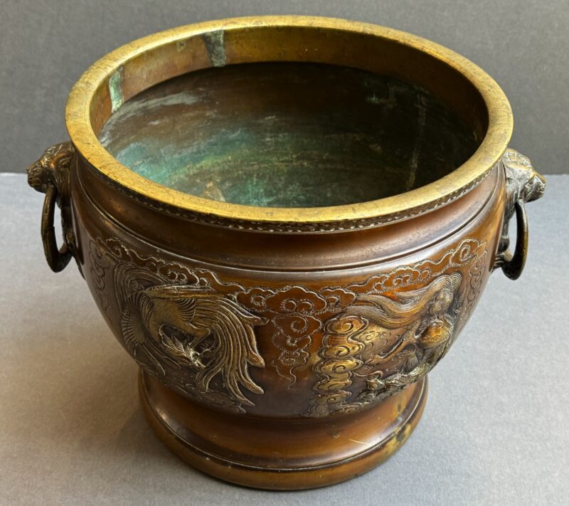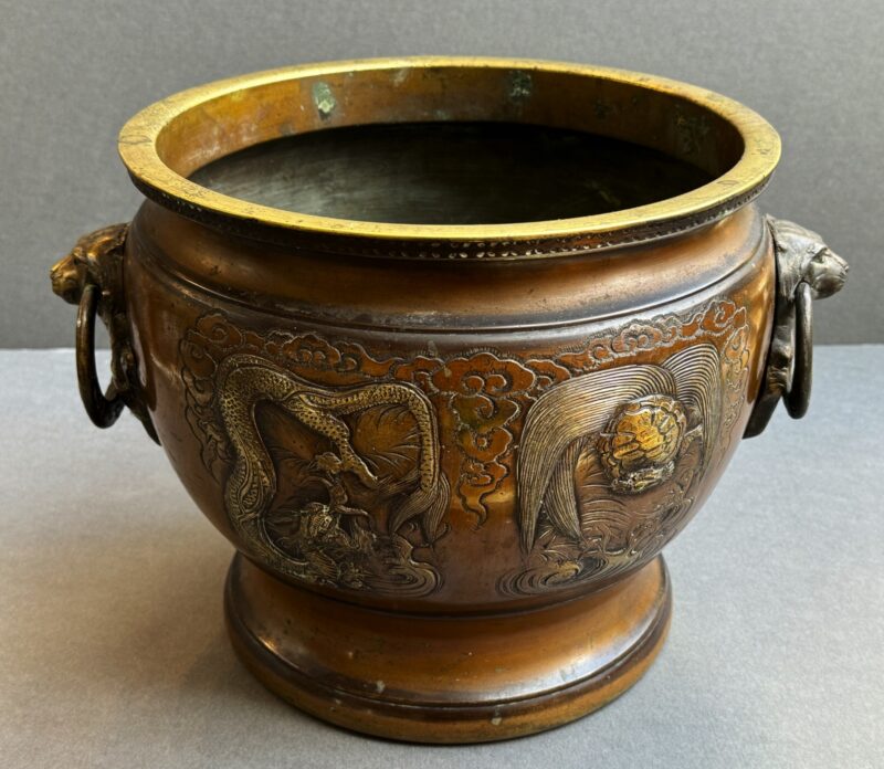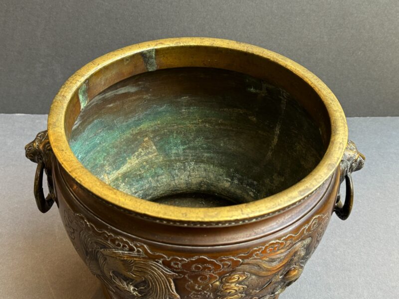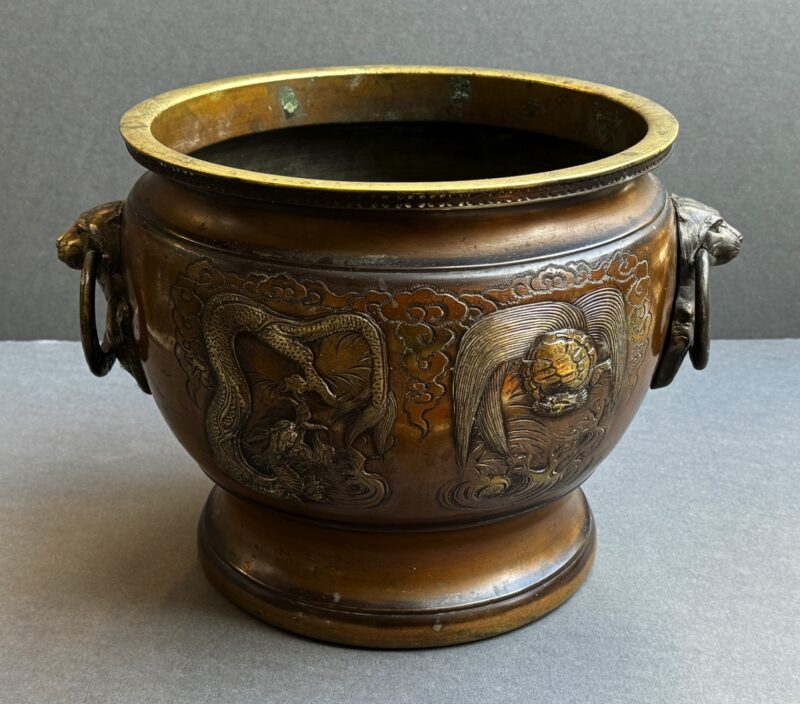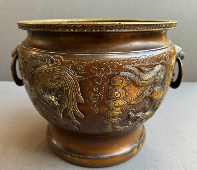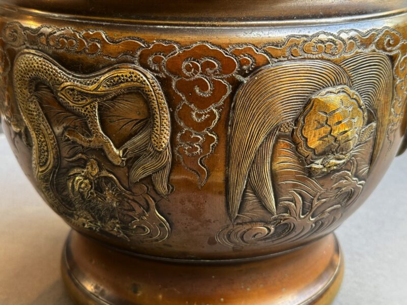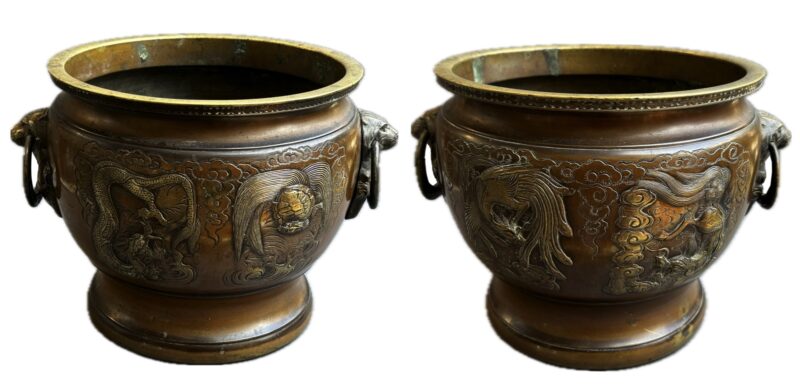Pair of Large 19th Century Japanese Bronze Jardinieres with Dragon Decoration