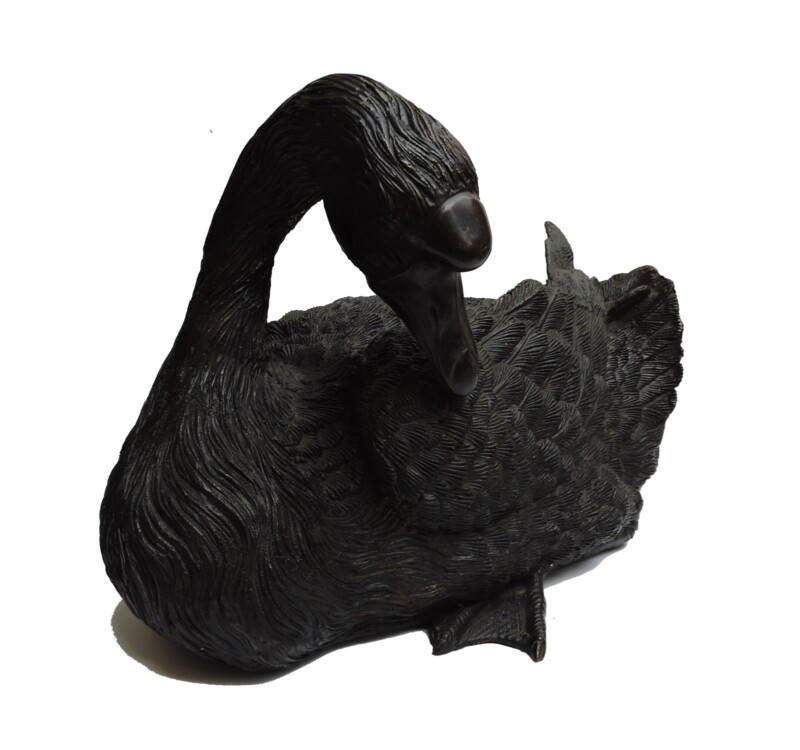 A fabulous large and heavy pair of Black Swan sculptures in bronze.  Each swan is in a different pose and the detail and sharpness in the feathers of the birds is impressive and of high quality.