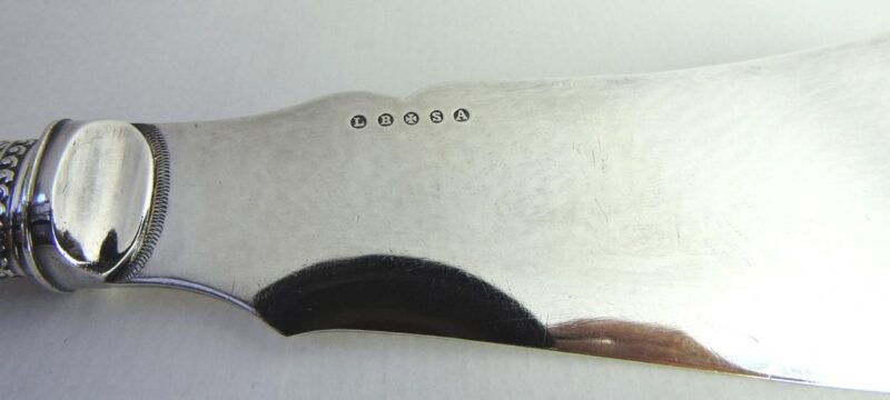 The knife blade is signed “LB  SA” with a Maltese cross symbol in the centre of the letters for Levesley Brothers of Sheffield.