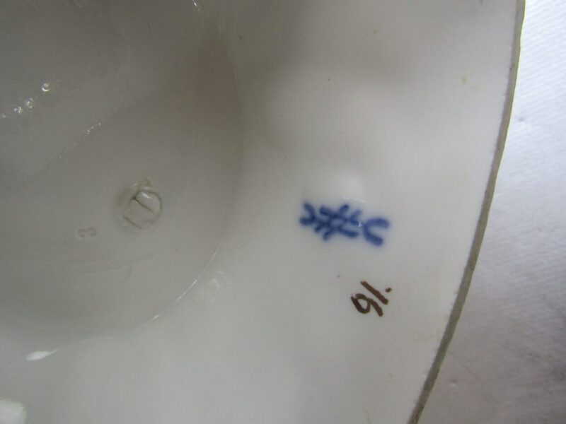 The bottom of each shows an early Volkstedt factory mark in blue (double pitchfork).